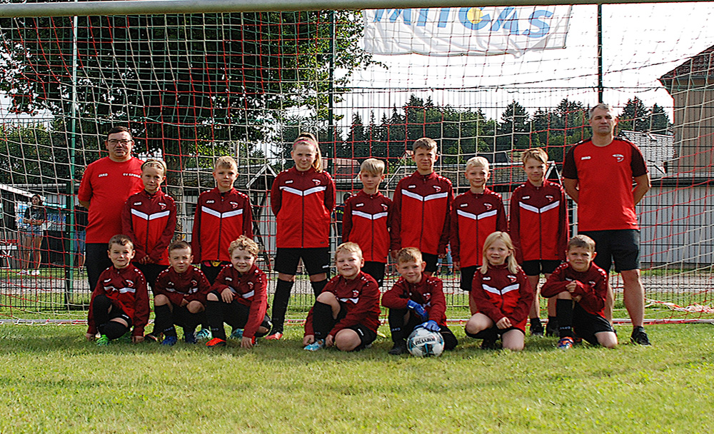 Hintere Reihe: Christian Wesser (Trainer), Jannis Sommer, Franz Deyerling, Anni Gerste, Lion Hartnack, Ben Kranz, Felix Stalive, Luis Hüfner, Kevin Hüfner (Trainer),